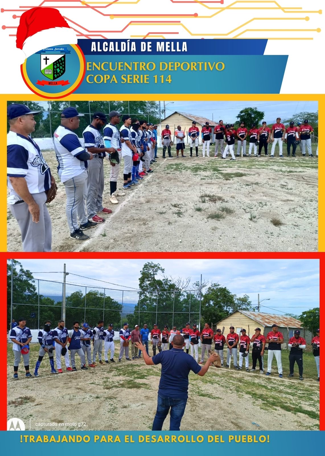 El domingo pasado, el Ayuntamiento de Mella brindó su apoyo a los equipos de Sofbol de Los Melleros Ausentes y Poderoso de Mella, dos equipos locales que participaron en un emocionante intercambio deportivo. Durante el evento, el alcalde de Mella, Tito, tuvo el honor de lanzar la primera bola, marcando el inicio de este intercambio deportivo.