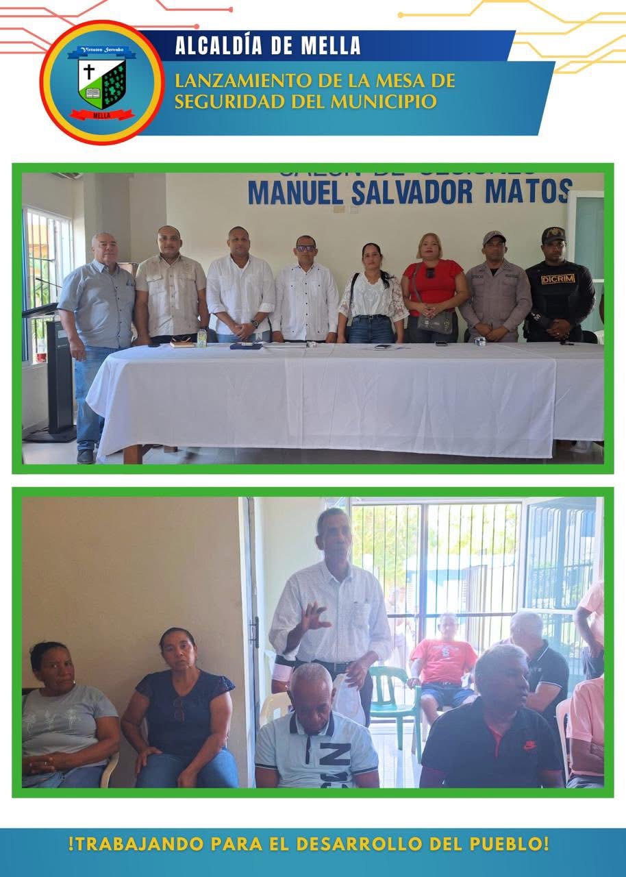 El pasado viernes se llevó a cabo en el municipio de Mella la reunión de lanzamiento de la Mesa de Seguridad, un espacio de articulación institucional y comunitaria para la promoción de la convivencia pacífica, la prevención de la violencia y el fortalecimiento de la seguridad ciudadana.