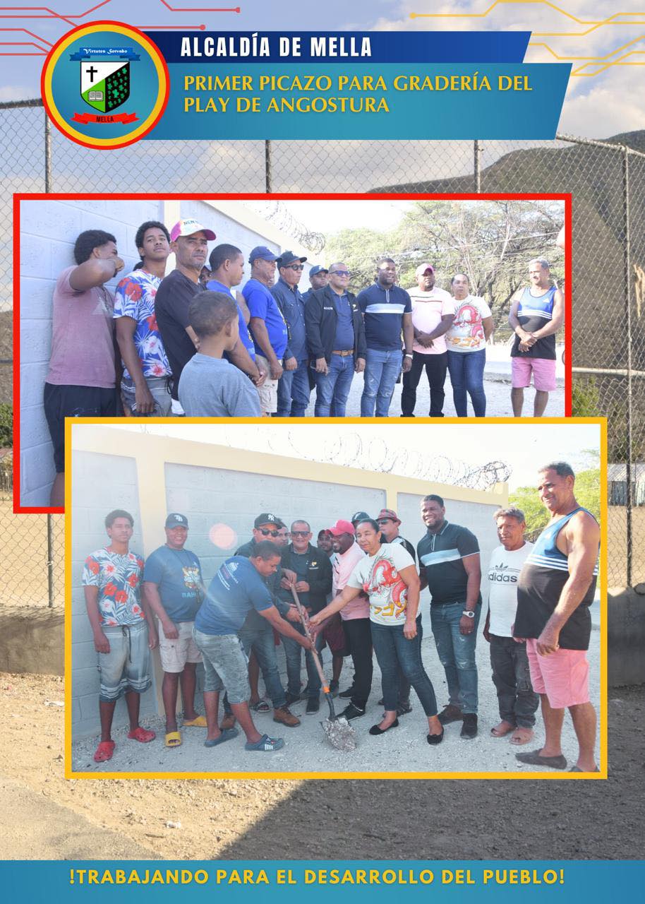 El pasado viernes 9, la Alcaldía del municipio de Mella dio el primer picazo para la construcción de una gradería en el Play de Angostura, dando inicio a las obras priorizadas por la comunidad mediante el Presupuesto Participativo Municipal.